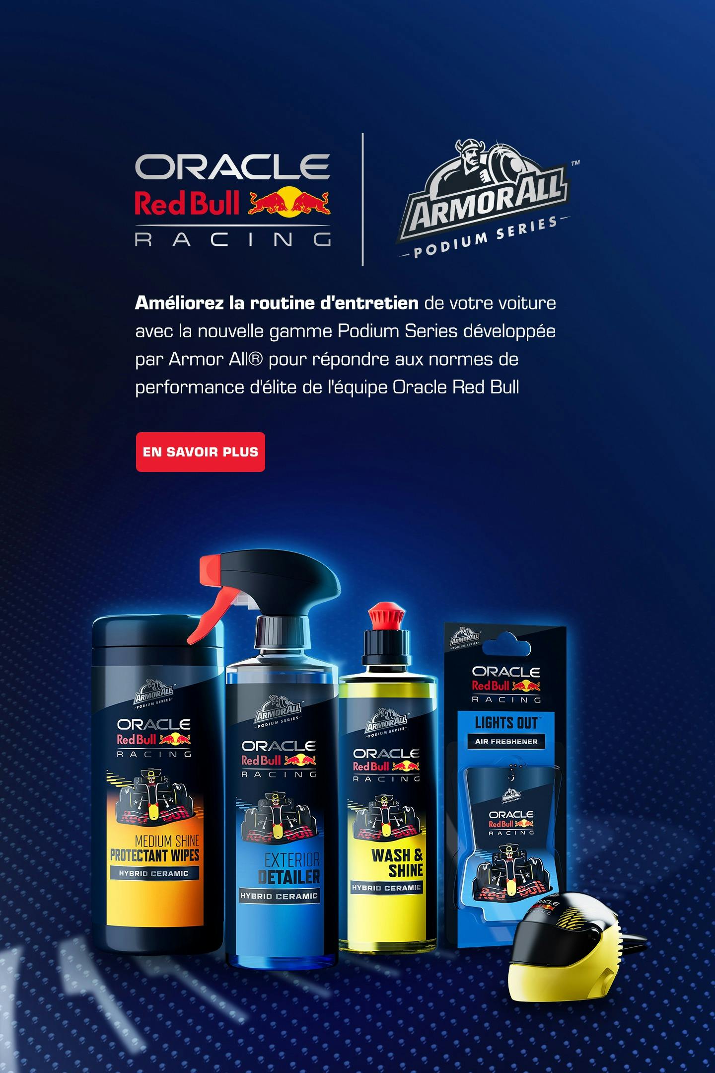 Armor All® bénéficie de la confiance de l’écurie Oracle Red Bull Racing, six fois championne du monde de F1. Cliquez ici pour en savoir plus sur ce partenariat enthousiasmant et pour découvrir pourquoi Armor All® est Chosen By Champions™.